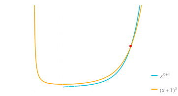 AIくんは何か云ってます -> xのx+1乗とx+1のx乗はどちらが大きい?