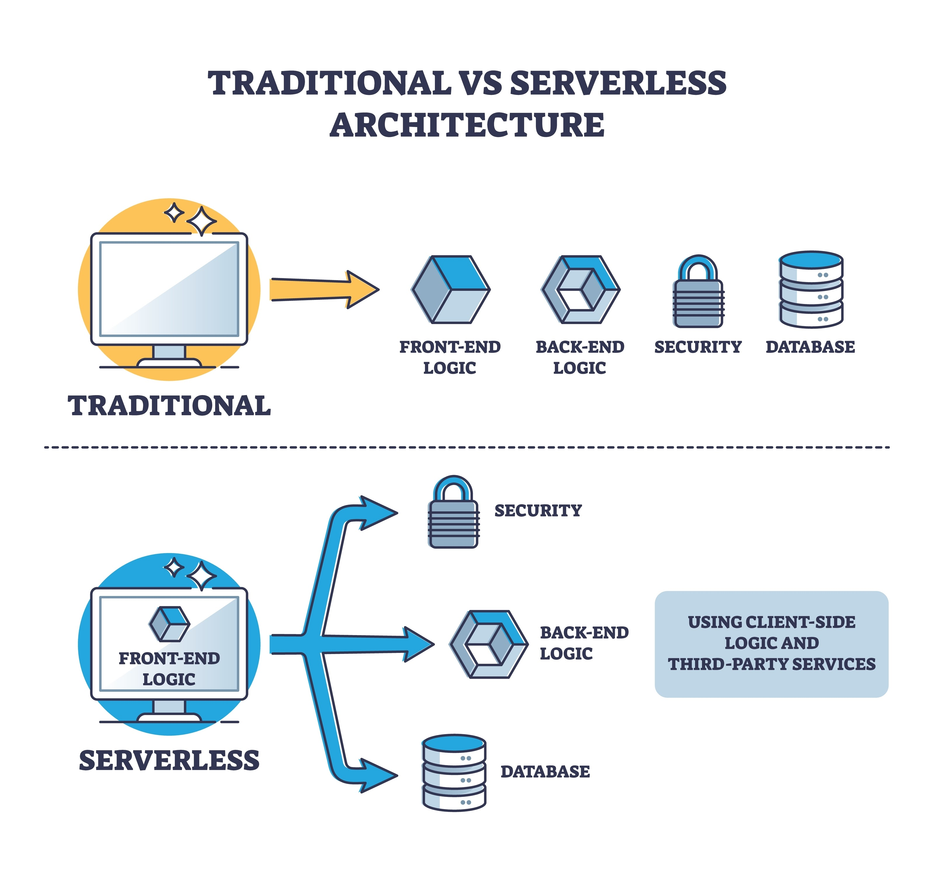 簡単に言うと、昔は一つのアプリケーションの中にフロントエンドとバックエンドが同居してたんだけど、今は役割を完全に分けて、独立した存在として開発・運用するようになったってこと。